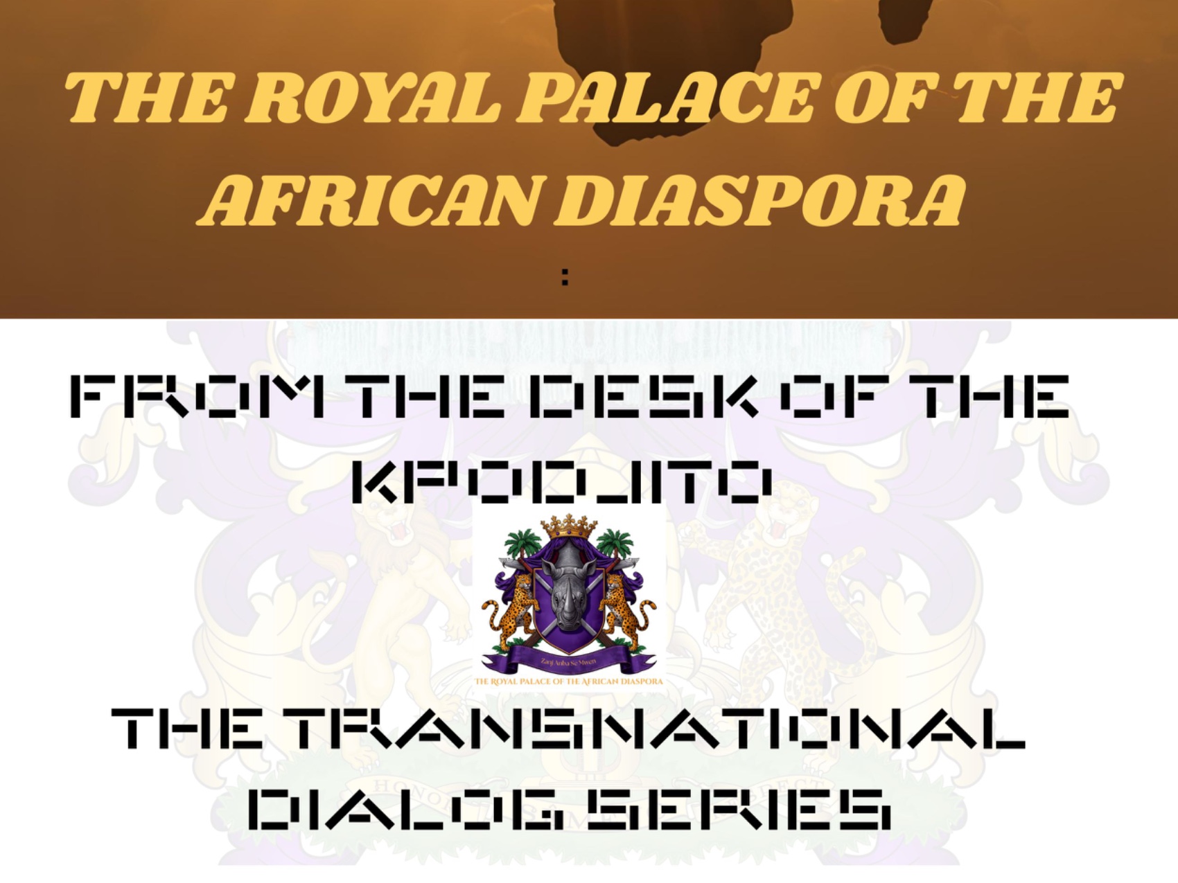 The Royal Palace of the African Diaspora & The Bureau of the African Diaspora are informed, authoritative voices of and for, African descendants in transnational affairs. It creates a welcoming space for open dialogue, promoting cultural and economic dignity among the African Diaspora and African nationals by fostering spiritual agency; engaging cultural diplomacy; and providing opportunities for mutual profit. Through its public-educational programs, scholarship and documentation, The Royal Palace and its Bureau will serve civil society, heads-of-state; government and non-government organizations who are building bridges and scaffolding ties between the worlds of Africa and her Diaspora. The Royal Palace is ruled by HRM Queen Mother Dr. Dòwòti Désir www.queenmotherdowoti.org